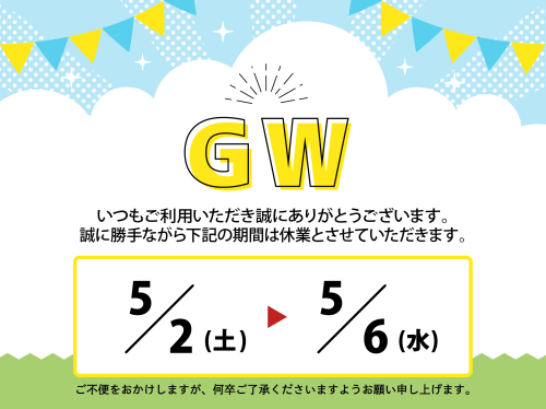 ゴールデンウィークの営業スケジュールを下記の通りご案内いたします。